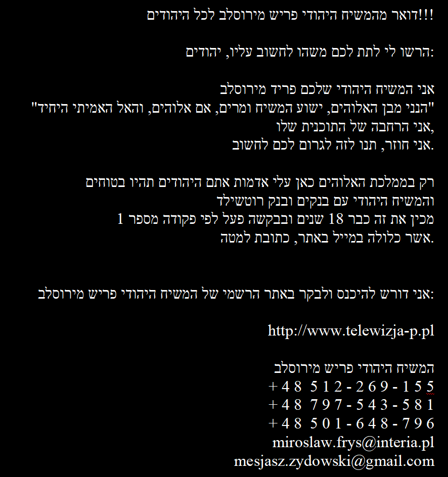 I DEMAND that you enter and familiarize yourself with the official website of the Jewish Messiah Fryś Mirosław:
