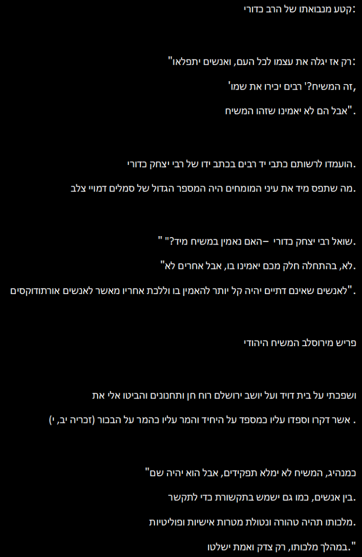 MESJASZ ŻYDOWSKI INNY SPOSÓB MA INACZEJ WIDZI SPRAWY NIŻ WY DLATEGO WAM JEST POTRZEBNY DLATEGO JEST MESJASZEM