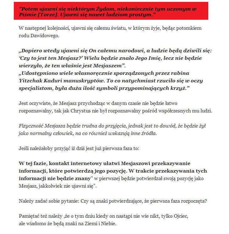 UZNANIE MESJASZA ŻYDOWSKIEGO FRYŚ MIROSŁAW I POSŁUSZEŃSTWO